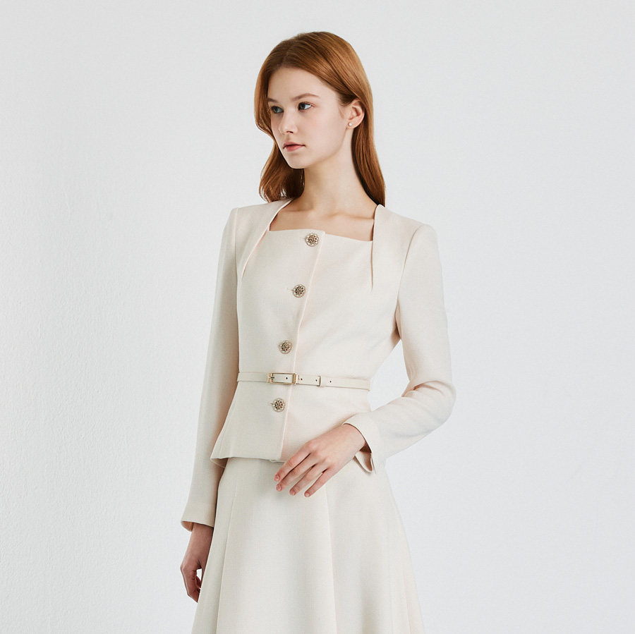 [26봄신상] (지고트) 벨티드 쥬얼 버튼 스퀘어넥 재킷 JS3B0JK403