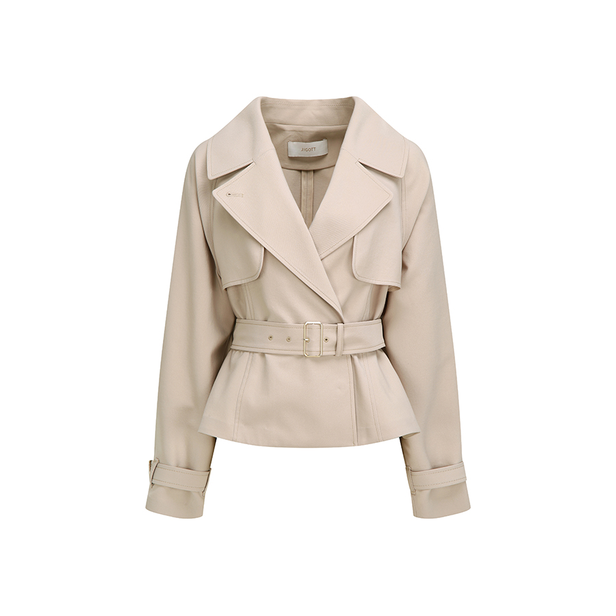 [26봄신상] (지고트) 벨티드 플랩 숏 트렌치 코트 JS3B0TC703