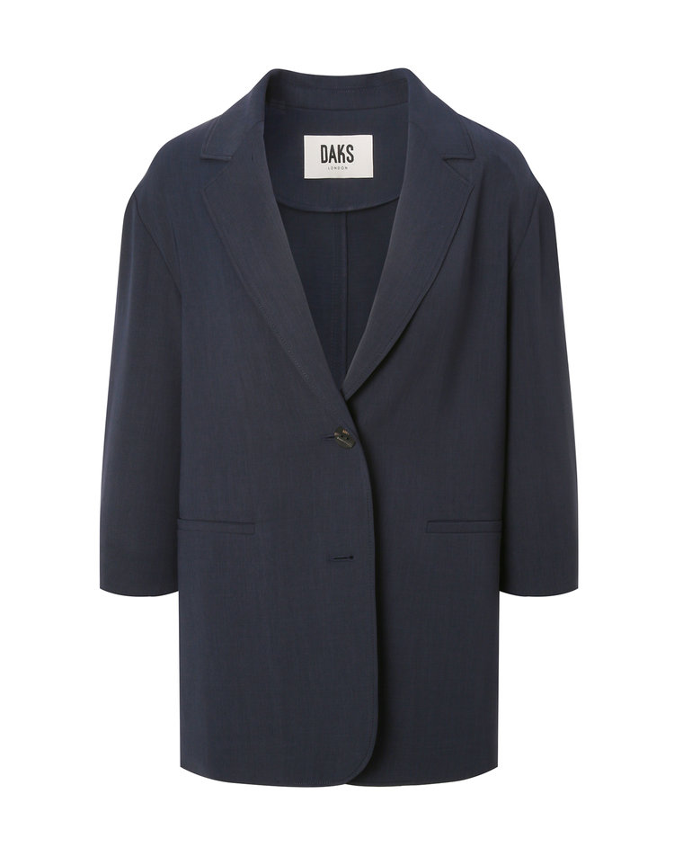 [닥스 여성]네이비 멜란지 오픈 카라넥 싱글 버튼 7부 소매 자켓_DLJA5B405N3