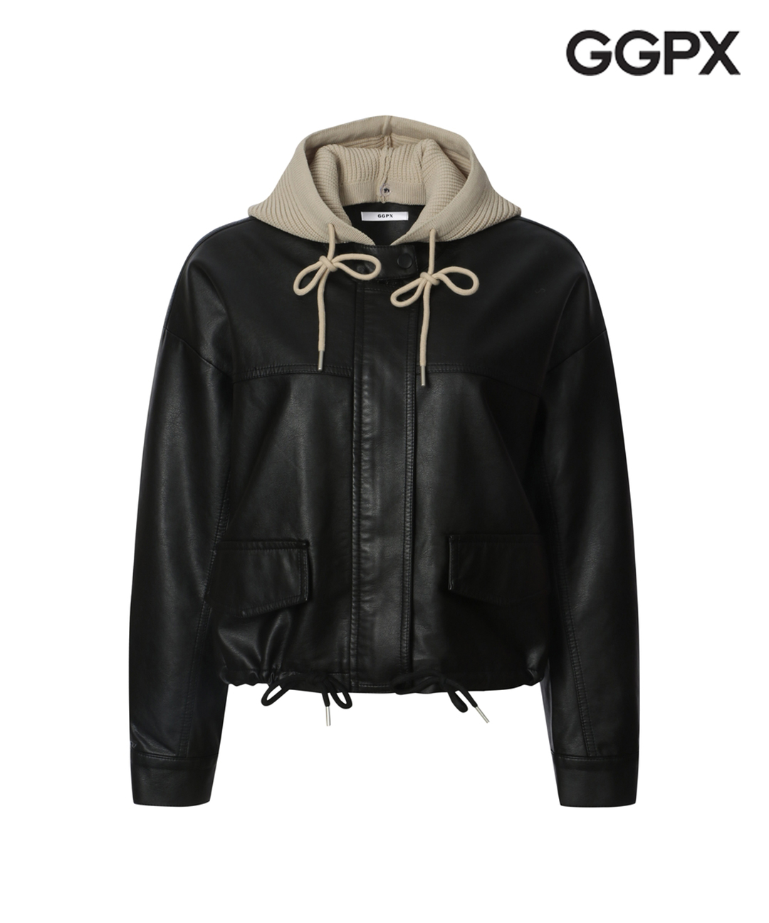 [GGPX] 니트 후드 탈부착 페이크 레더 자켓 (GQ2JK006B)