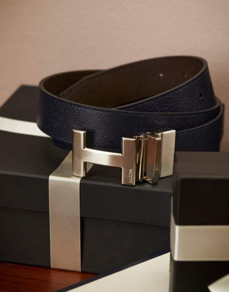 [헤지스 액세서리 남성]네이비 이니셜로고 소가죽 벨트_WUBE5E400N2
