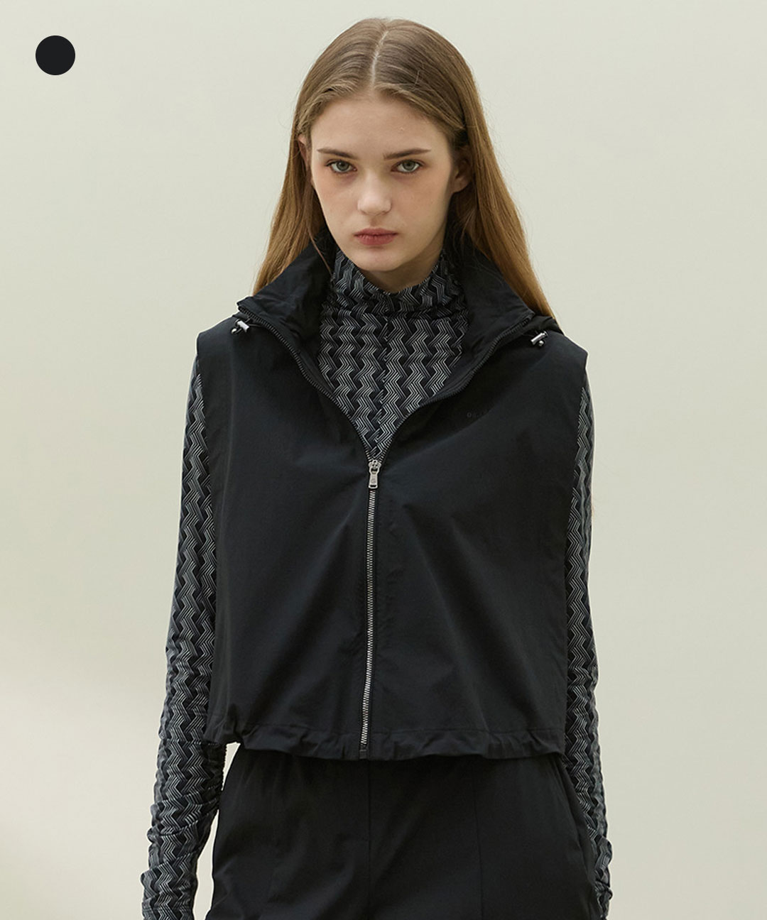 [DENNIS] 26SS신상 여성 스윙 풀집업 크롭베스트 블랙_HD5SLVT293