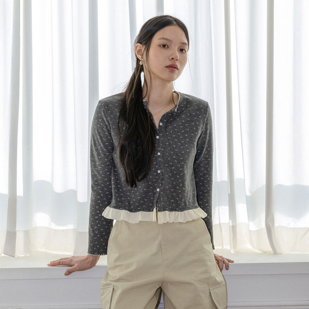 LS_Dot frill hem layered cardigan_CHARCOAL