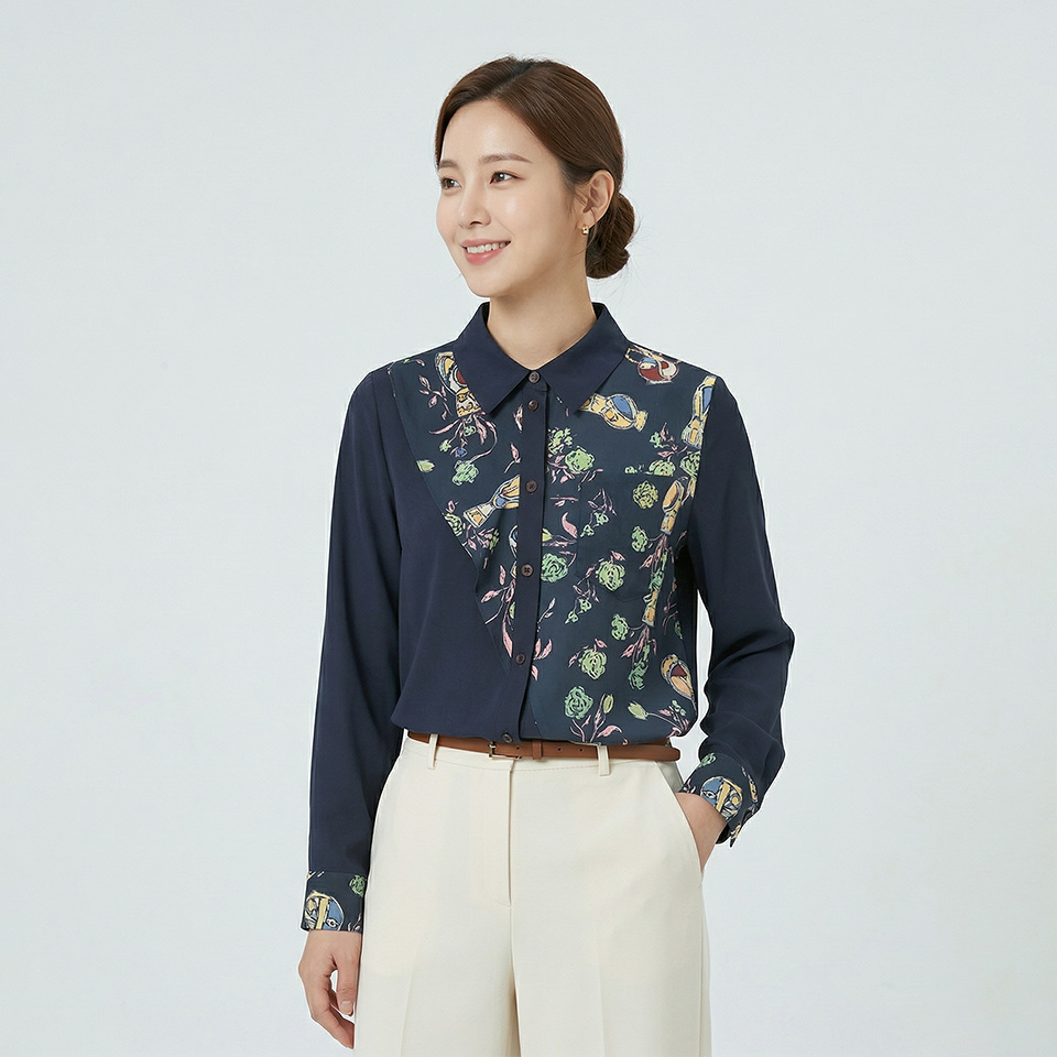 [꼼빠니아]언발 패턴 블라우스-CS24BF0102352B