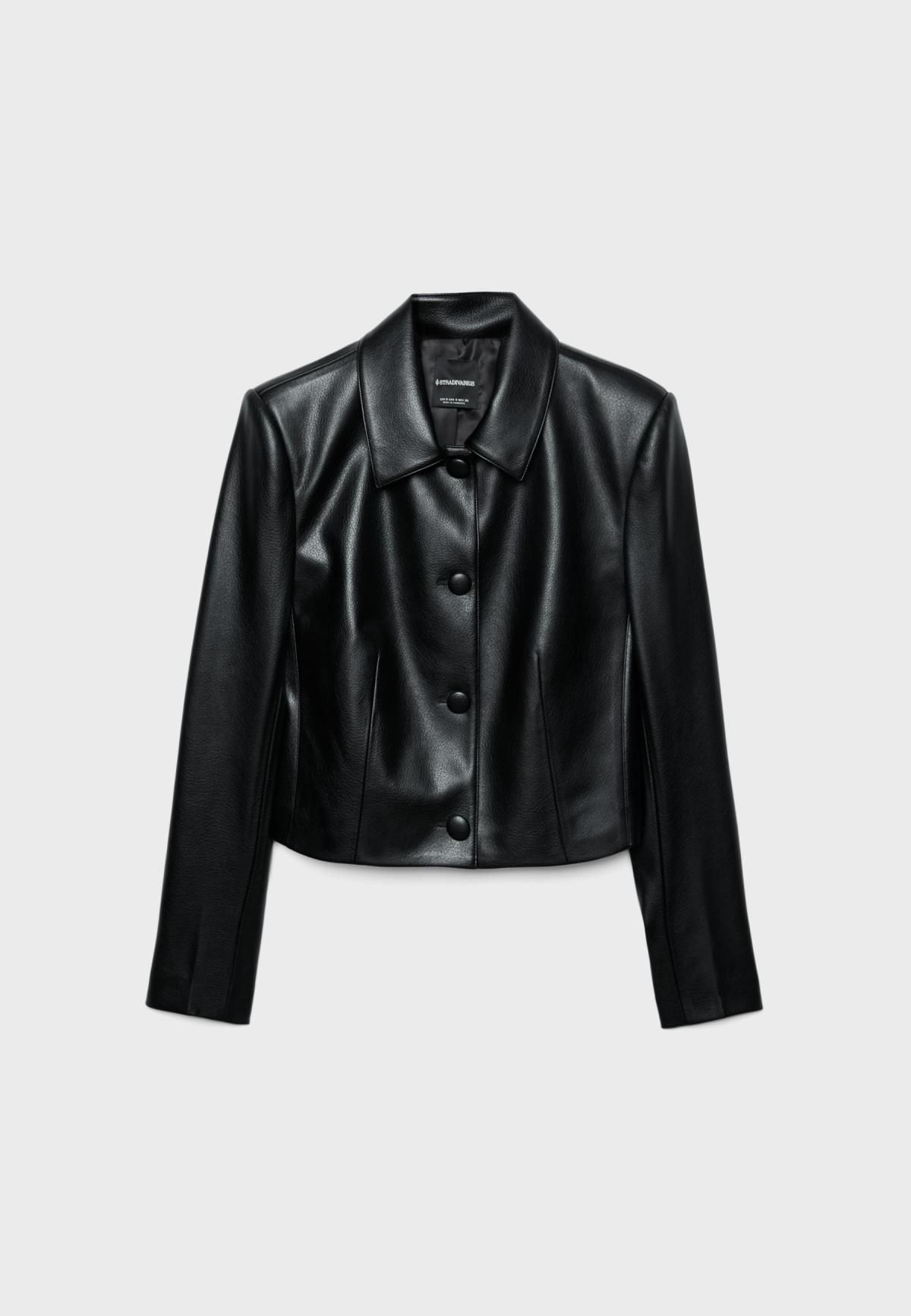 스트라디바리우스 레더 이펙트 크롭 블레이저 1942/833/001 BLACK