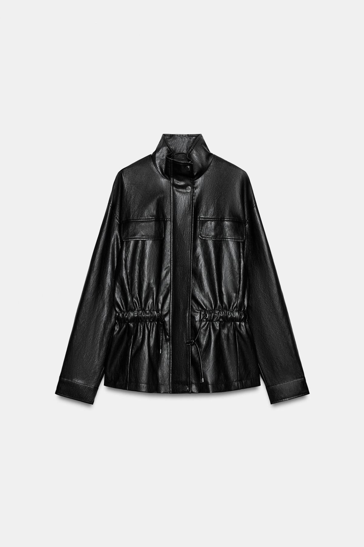 자라 하이넥 레더 이펙트 재킷 6318/047/800 BLACK