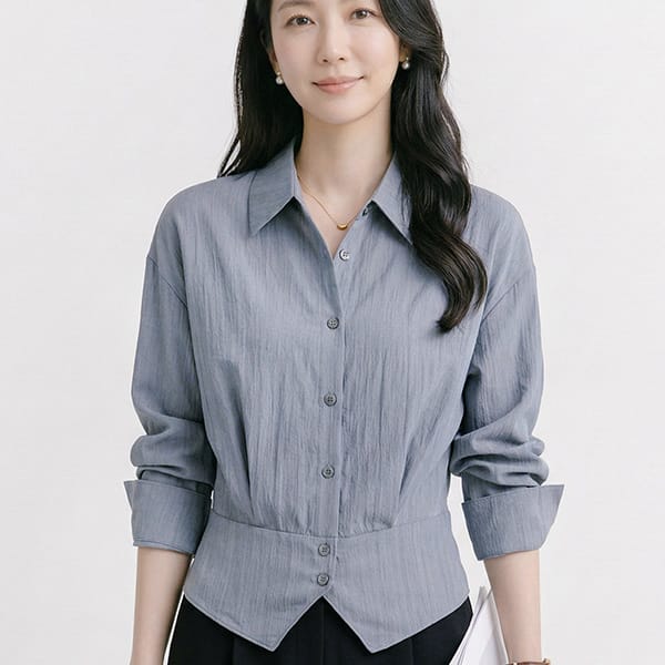 [나바바] NB3047 우아한 세련미 언발란스 긴팔 블라우스 셔츠