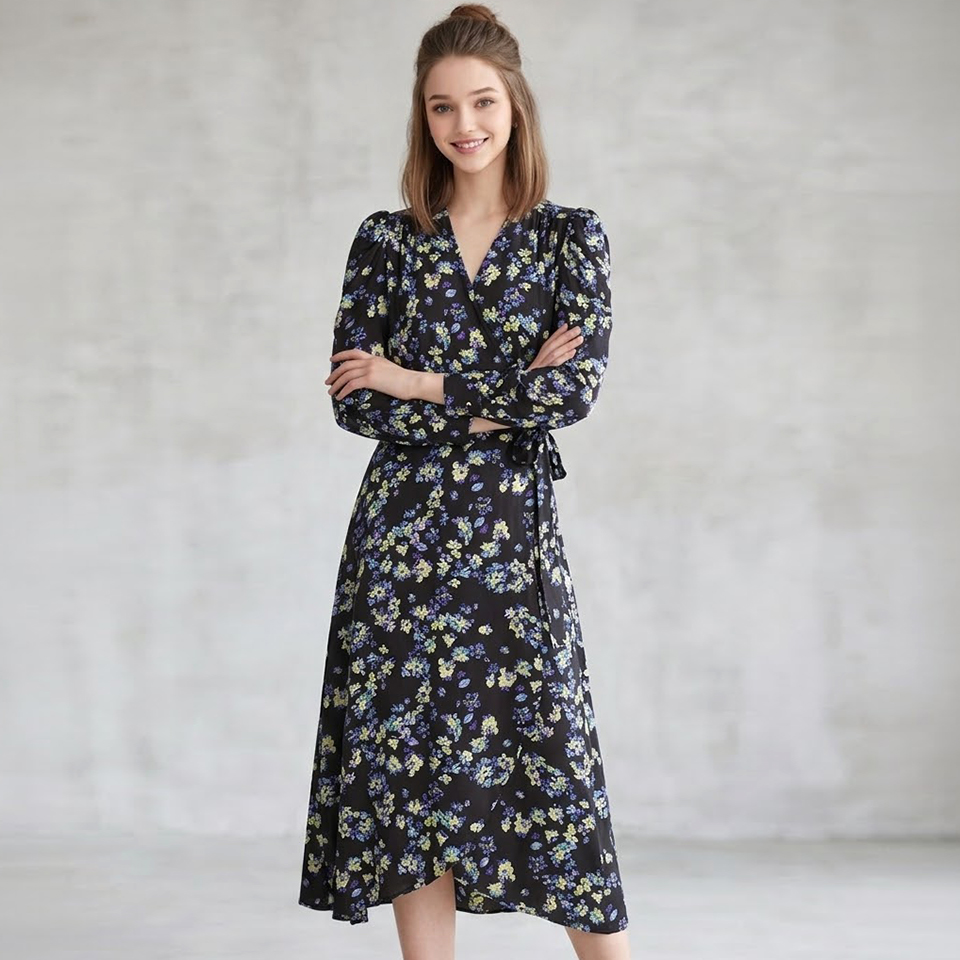[썬쿠] 패턴 프릴 브이넥 랩 롱 원피스(SN71D9OPS74X)