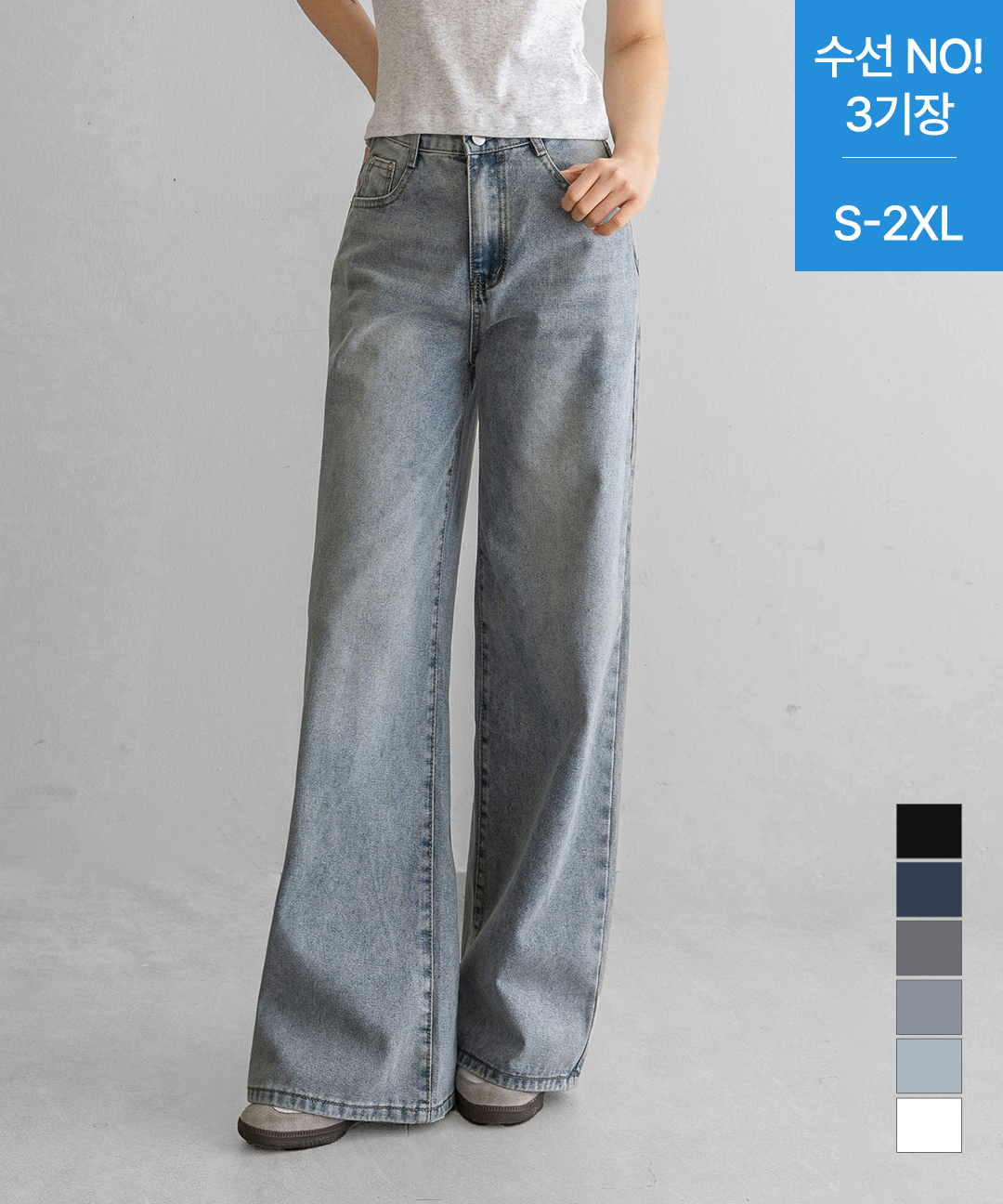 [진에비뉴] 클라시 워싱 와이드 롱 데님 팬츠