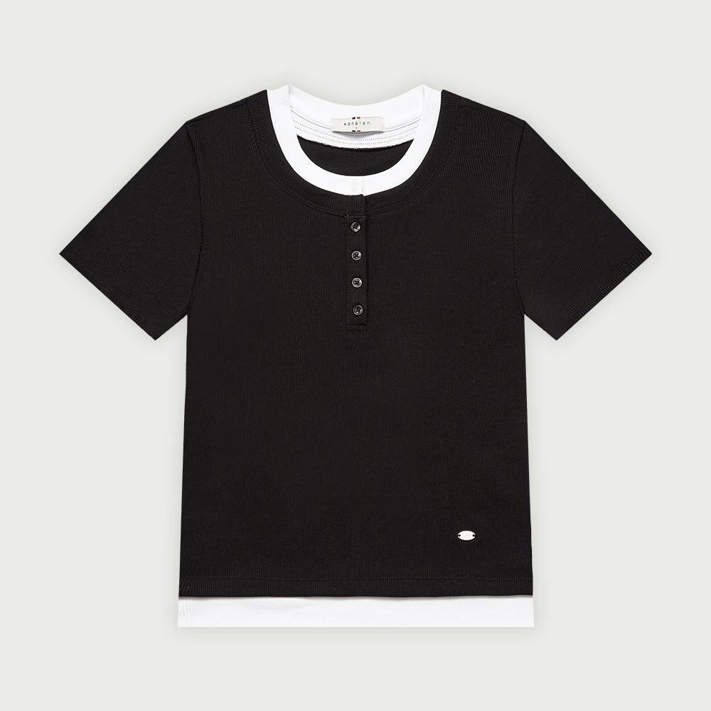 여성 웨일 슬림핏 헨리넥 티셔츠_100(10530-131-611-45)