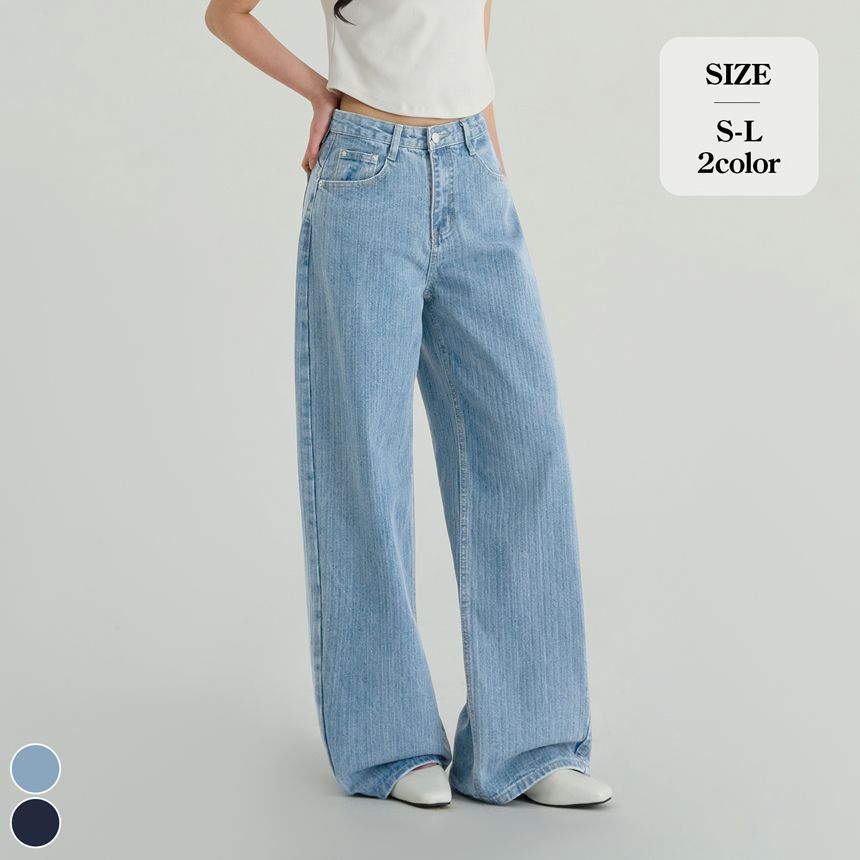 여성 스트라이프 와이드 데님 팬츠 (J2610)