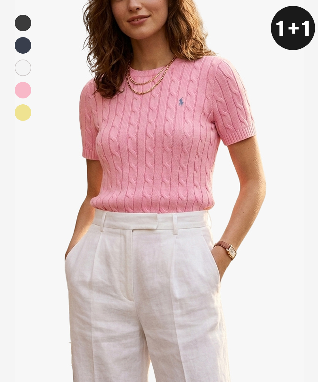 [1+1] [폴로] 여성 꽈배기 라운드 케이블 반팔 니트 5color