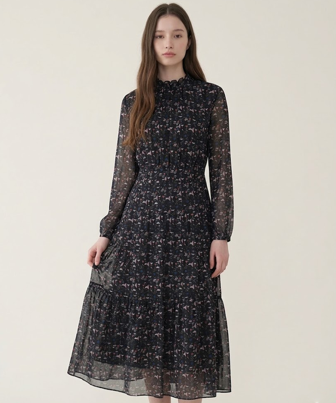 프릴넥 프린팅 쉬폰 원피스 (SIOAC2506)