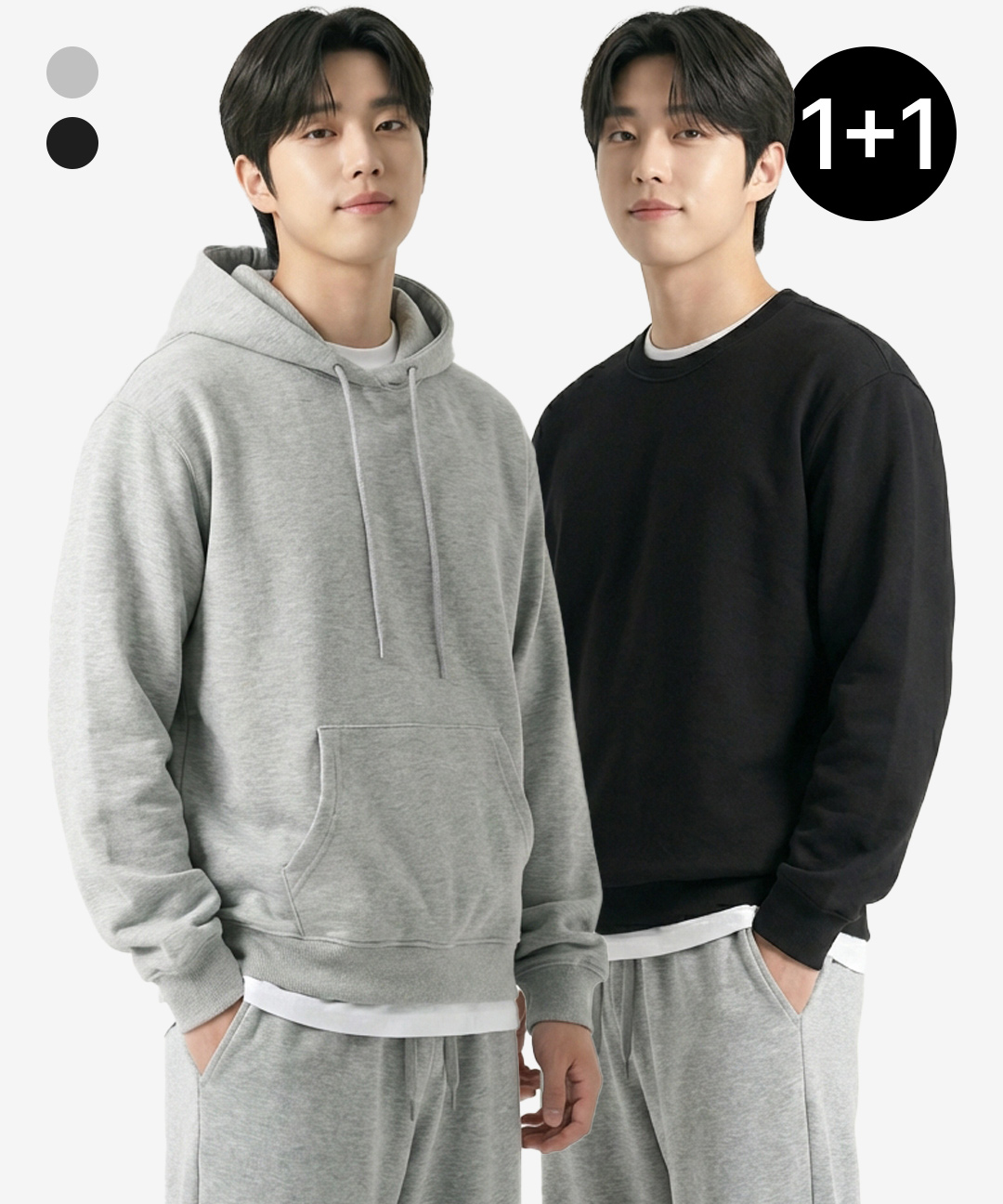 [1+1] 남여공용 데일리 무지 쮸리 후드+맨투맨 티셔츠