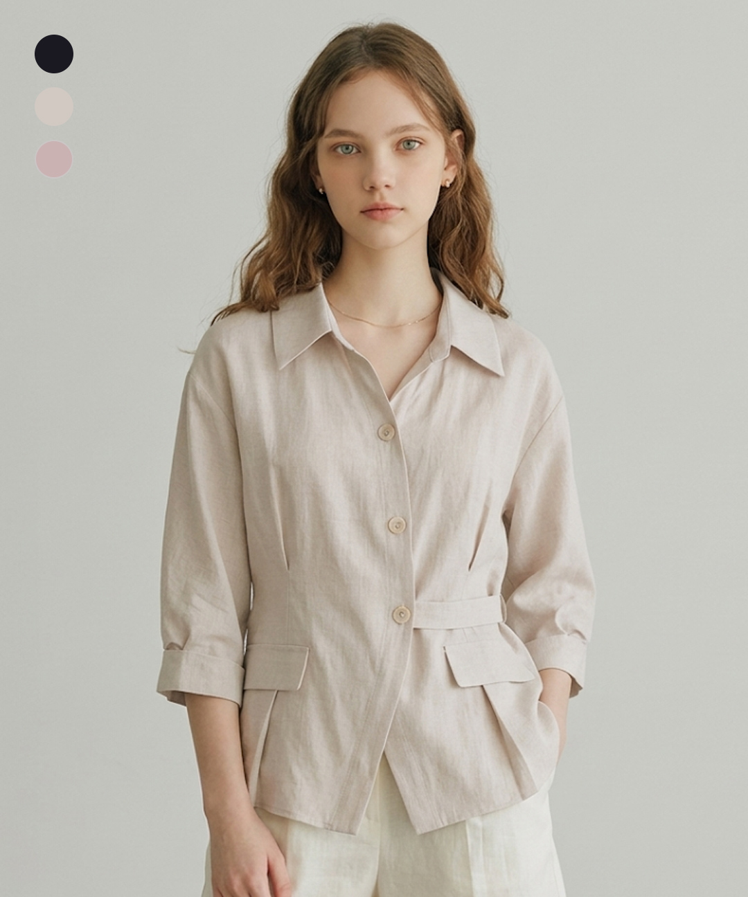 스트랩 롤업 페플럼 블라우스 (BIBAD2427)