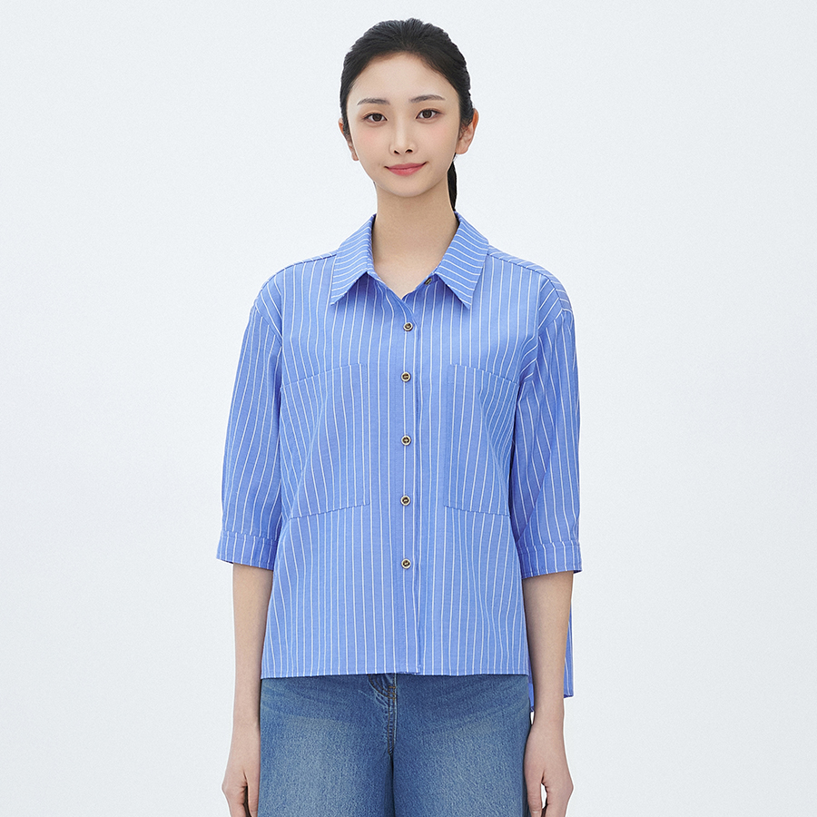오버핏 스트라이프 포켓 셔츠 (BKBAF7408)