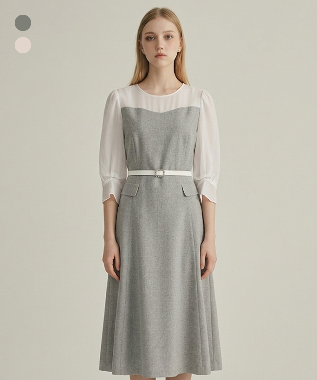 시스루 블라우스 벨티드 원피스 (BIOAD2513)