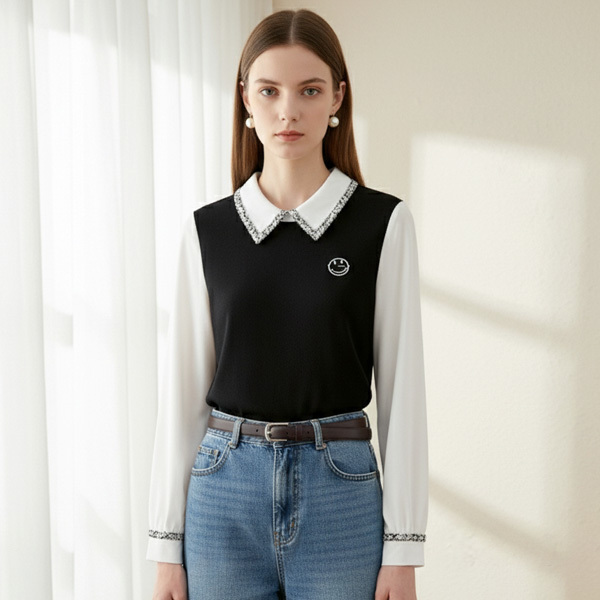 포니엘 스마일 레이어드 니트_RF1BL041