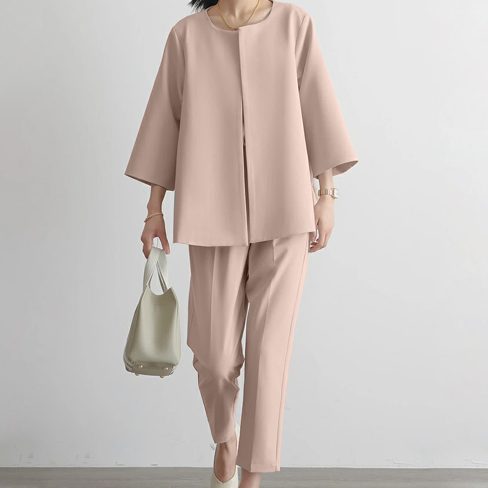 [1+1] [예쎄] 오픈 노카라 자켓+뒷밴딩 9부 팬츠(S6SSE006A)