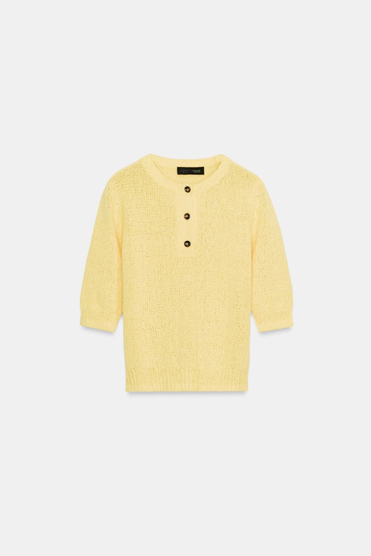 자라 옐로우 라운드넥 7부 소매 스웨터 2142/114/300 YELLOW
