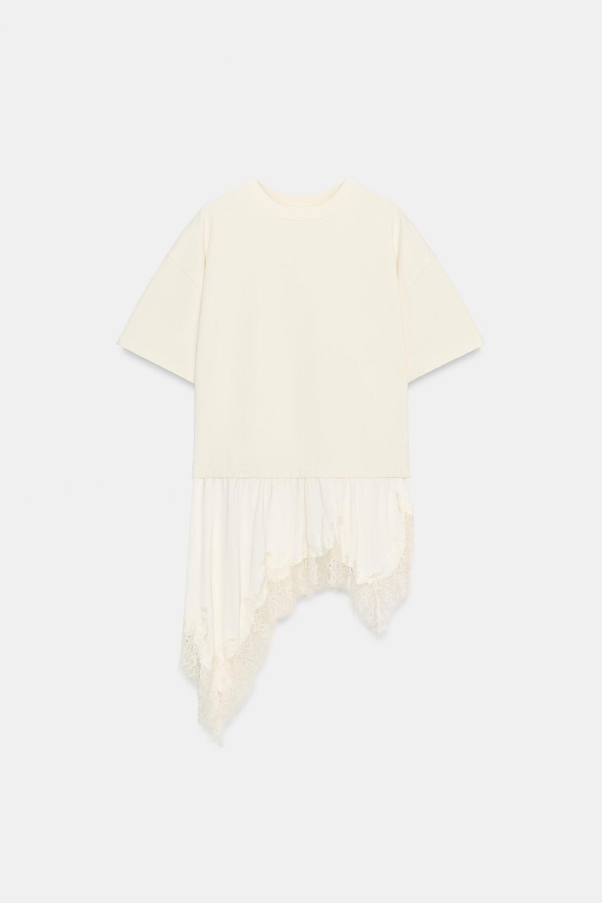 자라 레이스헴 비대칭 반팔 티셔츠 4813/325/712 ECRU