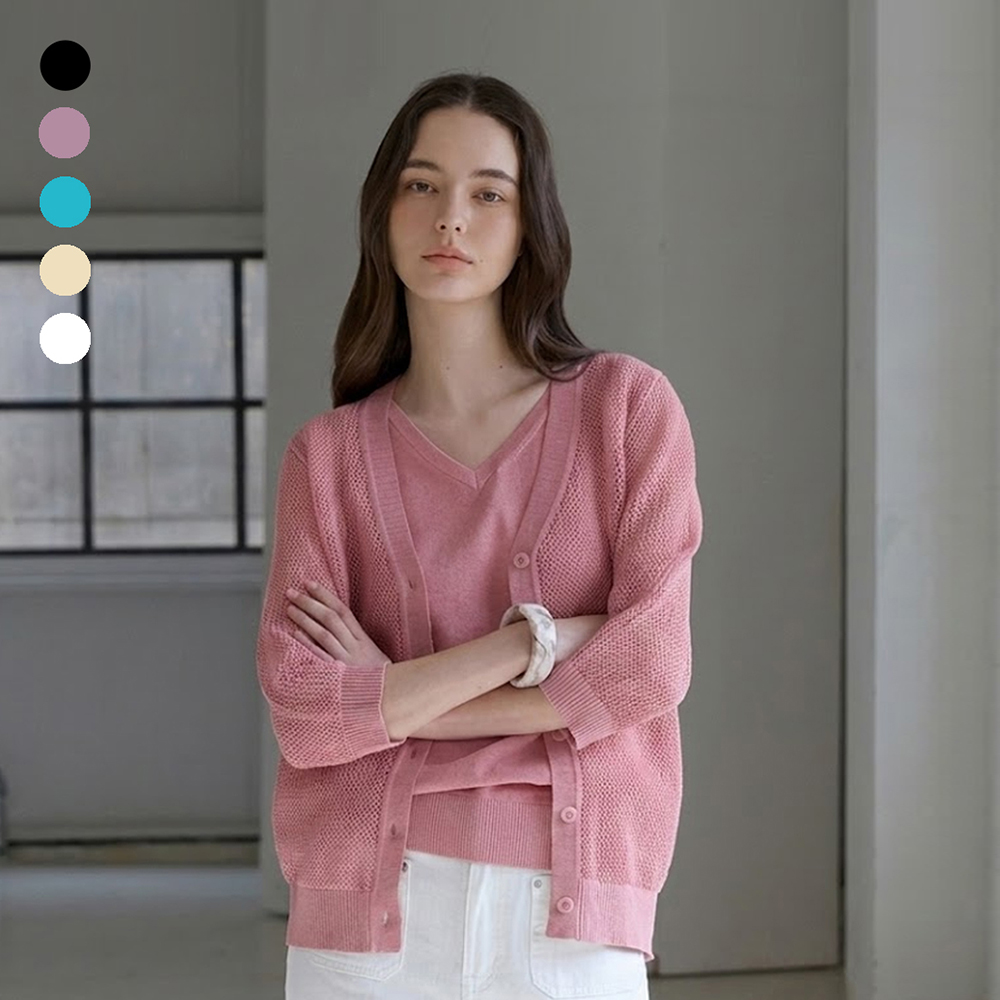 코튼 블렌딩 크로셰 가디건 니트탑 블라우스 SET