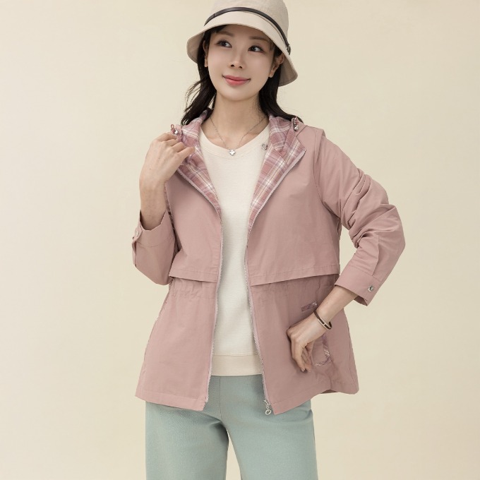 [디얼마미] 더프 체크 배색 점퍼 /마담 미시 중년 여성 빅사이즈 40대 50대