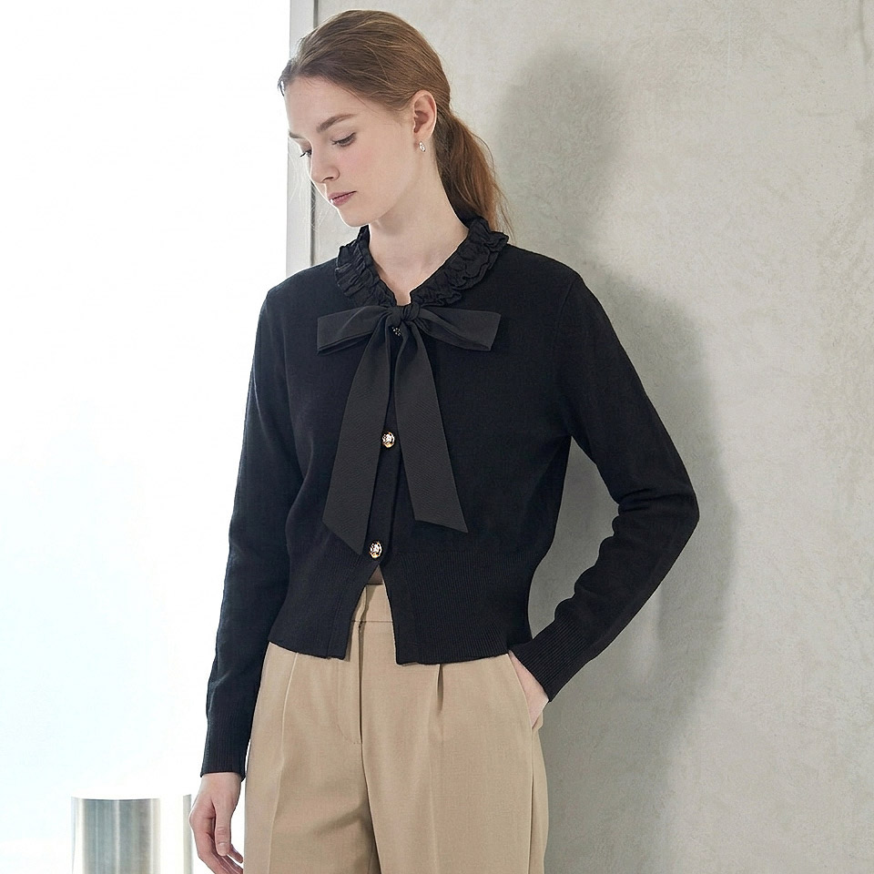 [레코브] 프릴 리본 브이넥 니트 가디건(LC61D3KC509X)