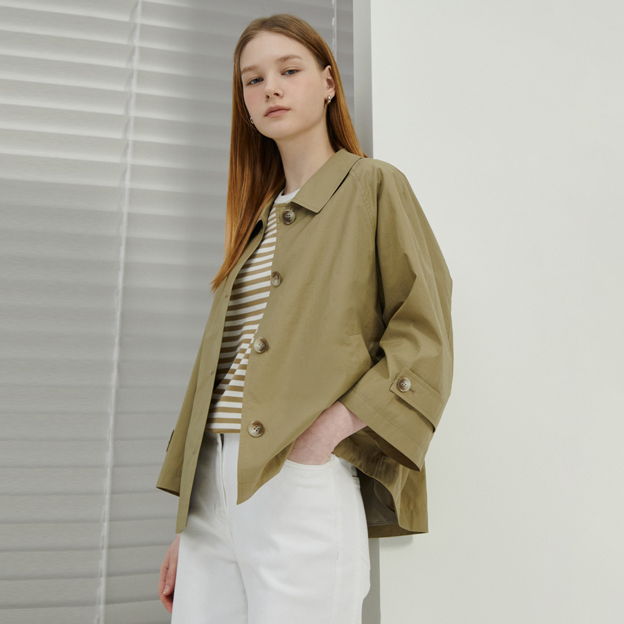 (더아이잗) 오버핏 래글런 숏 트렌치 재킷 IS4A0JK081
