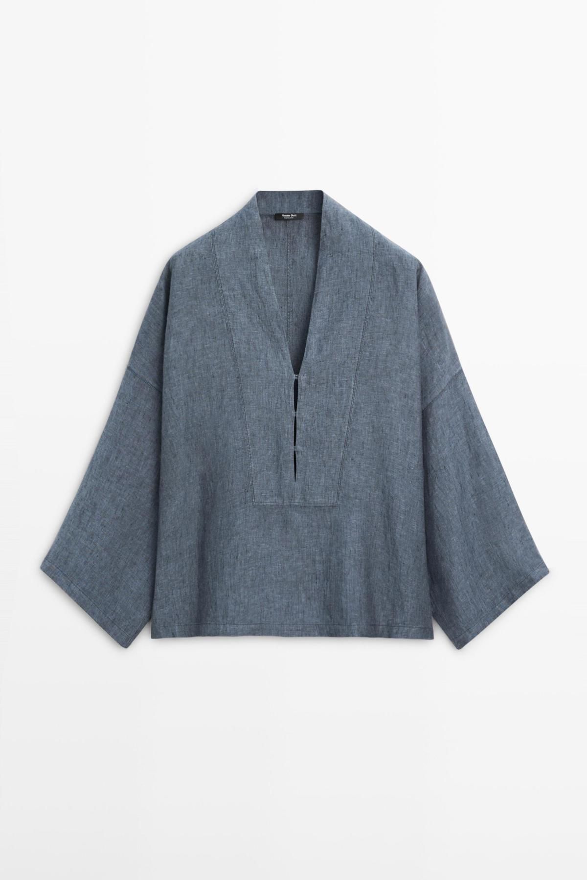 마시모두띠 100 린넨 V넥 기모노 블라우스 5157/731 INDIGO