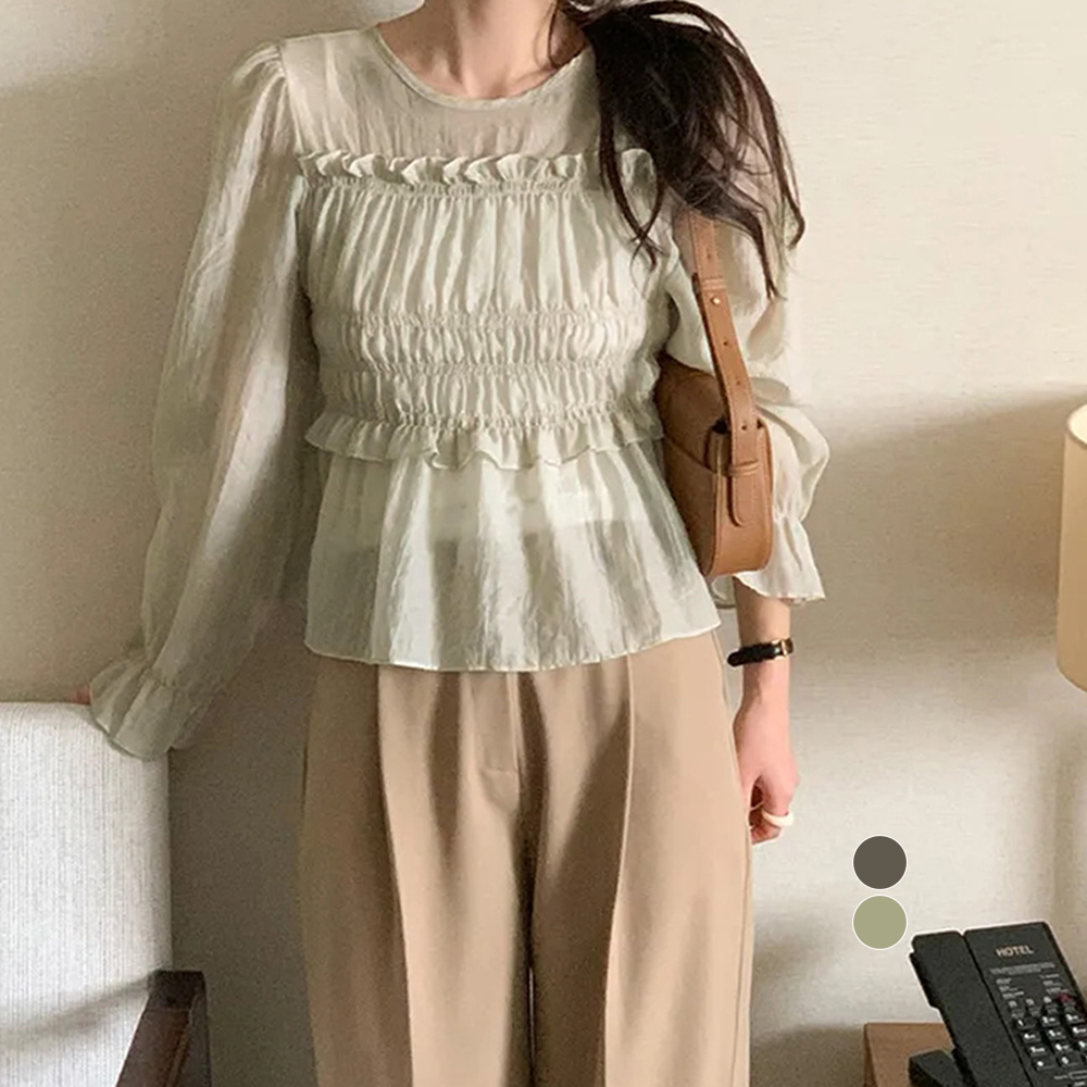 ATMARK 시스루쉬폰밴딩주름블라우스_AA61BL019G
