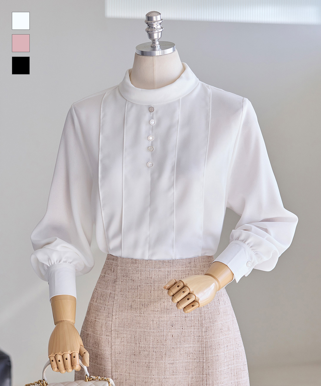 [커스텀에이블] 위드 버튼 하이넥 블라우스_T2603BL039A