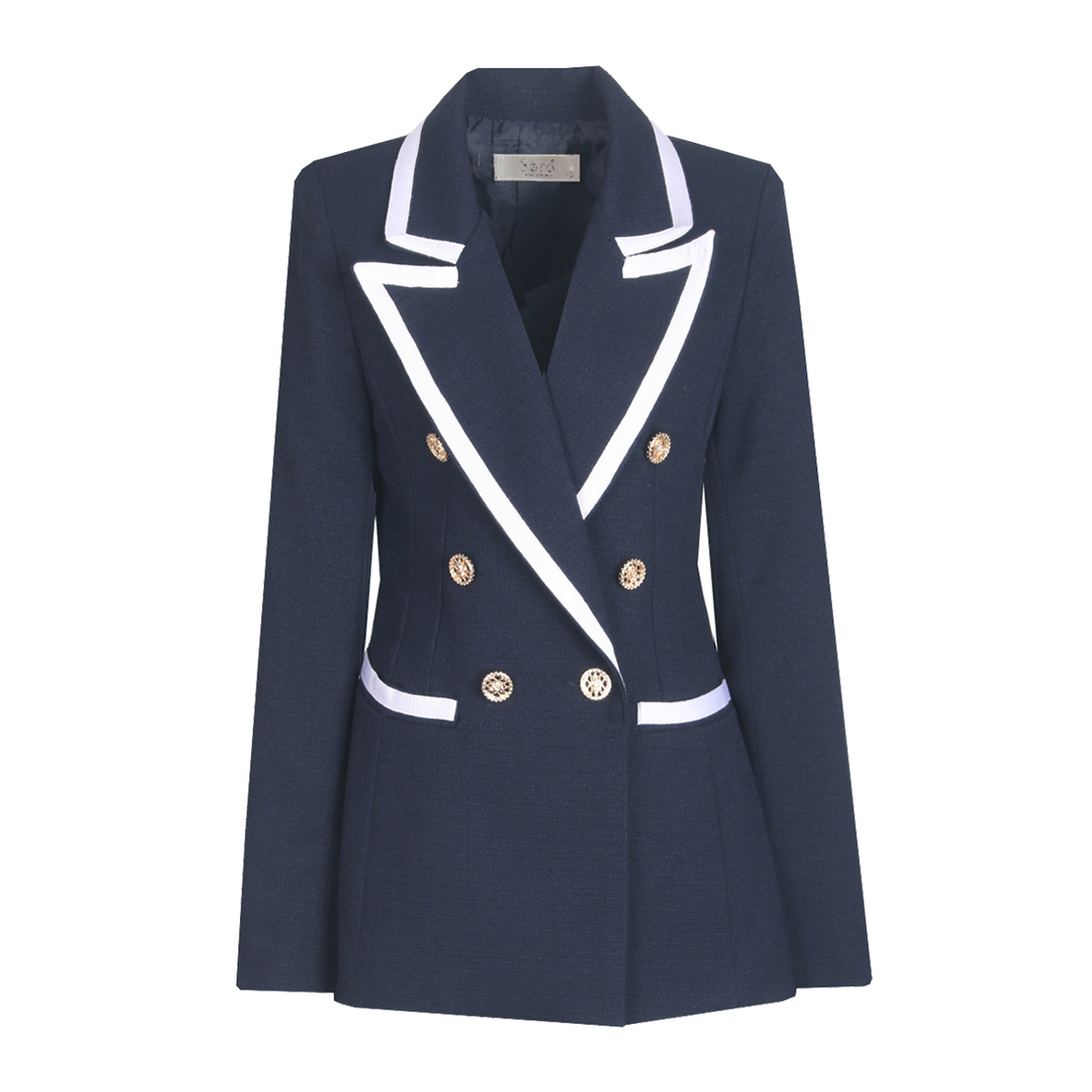 여성 배색 트리밍 더블버튼 봄가을 정장 자켓