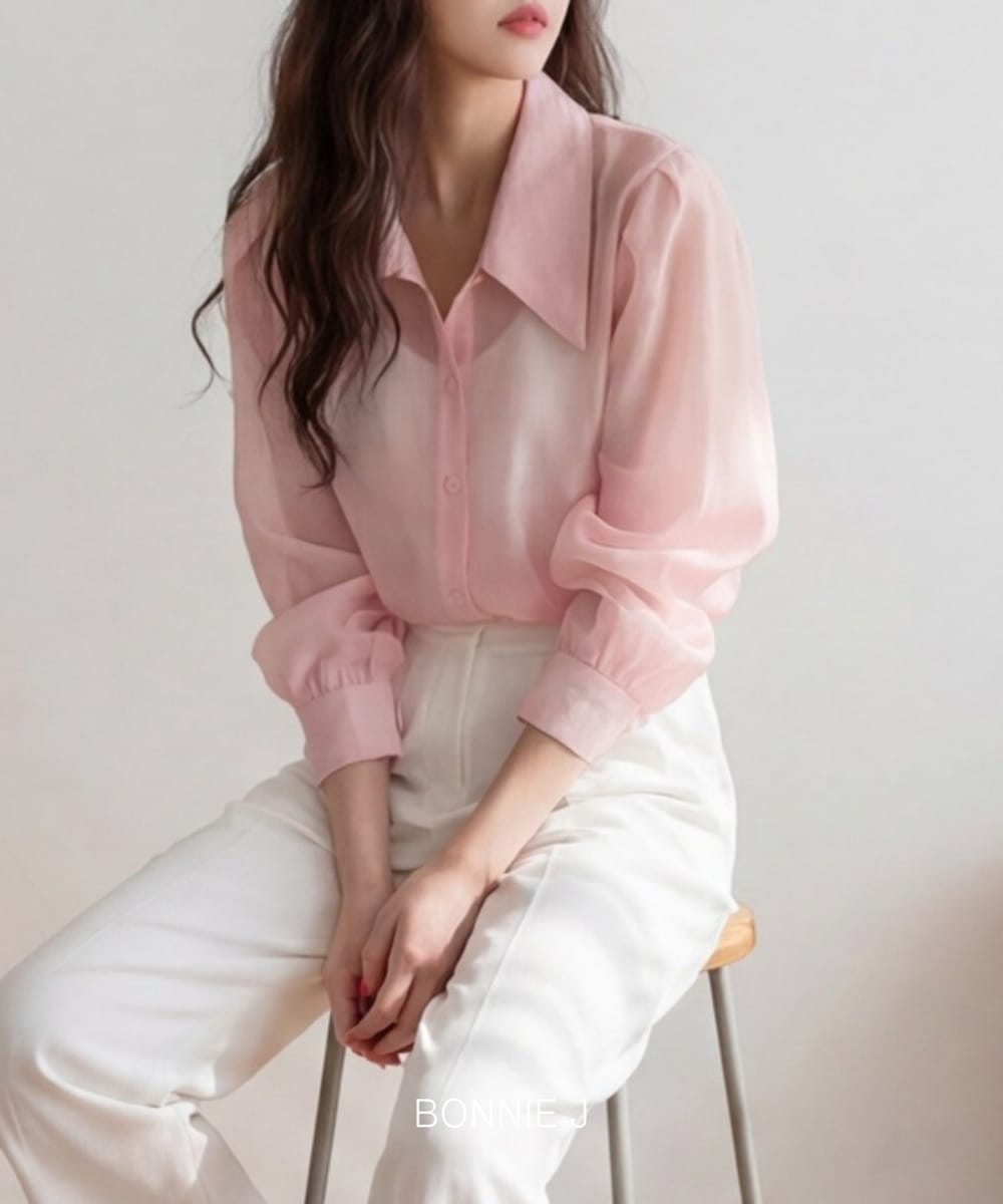 [보니제이] BONNIE J 봄 여름 비침 시스루 퍼프소매 블라우스 빅