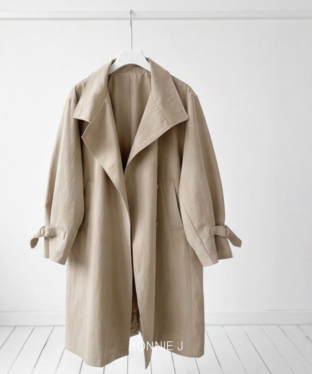 [보니제이] 클래식 벨티드 소매 바바리 자켓 패션 봄 가을 간절기