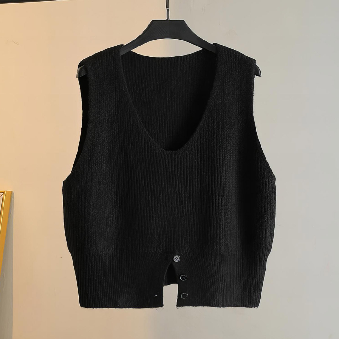 클라셰 브이넥 골지 크롭 버튼 니트 베스트