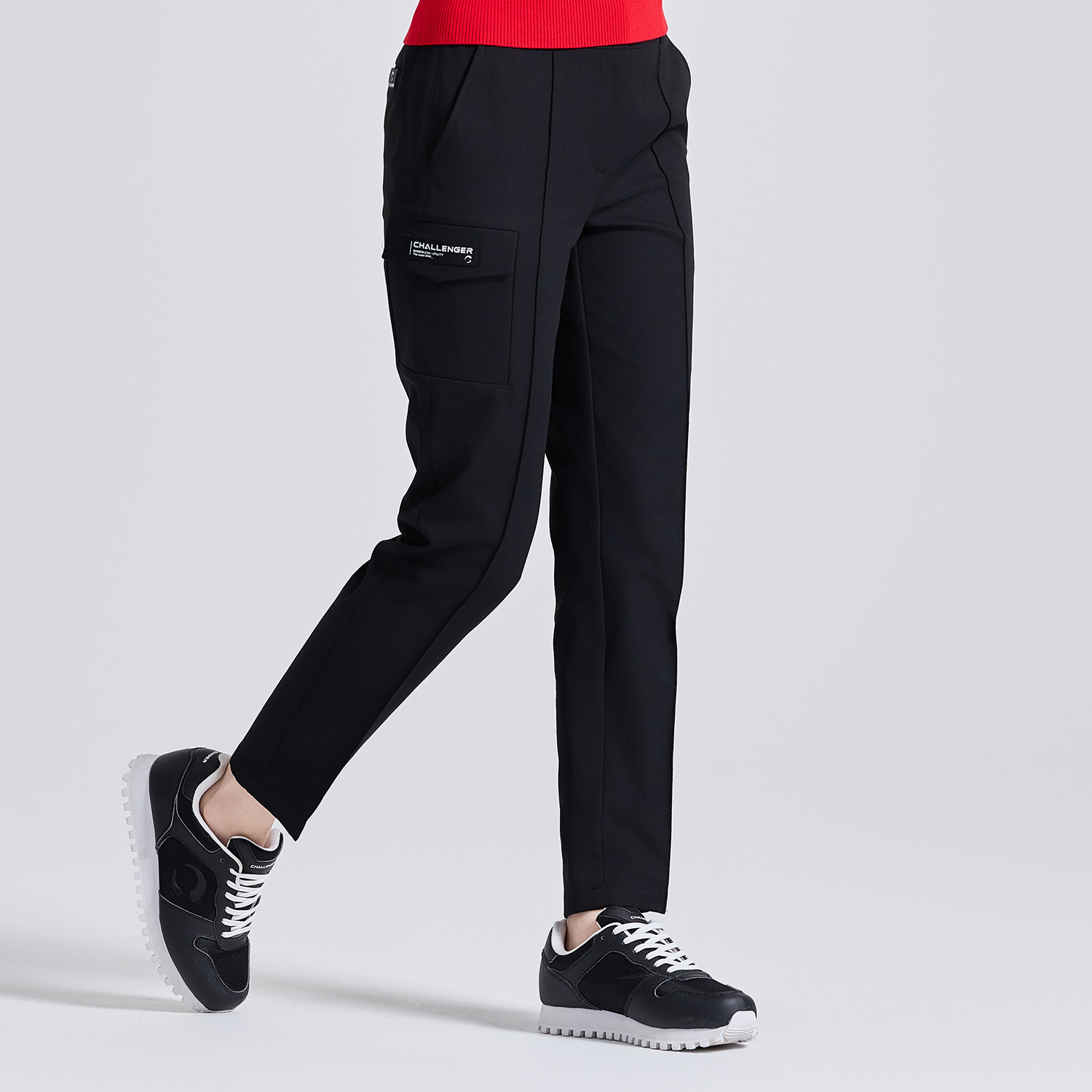 여성 포켓 디테일 핀턱 테이퍼드핏 팬츠 블랙