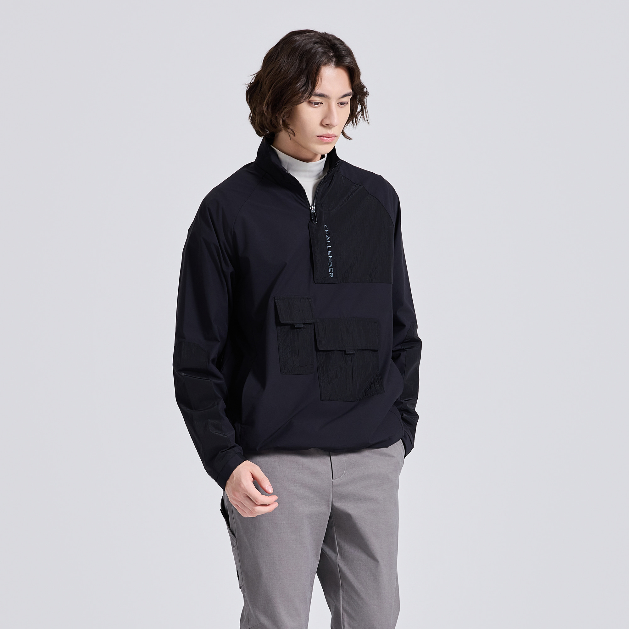 남성 유니크 우븐믹스 하이넥 아노락 블랙