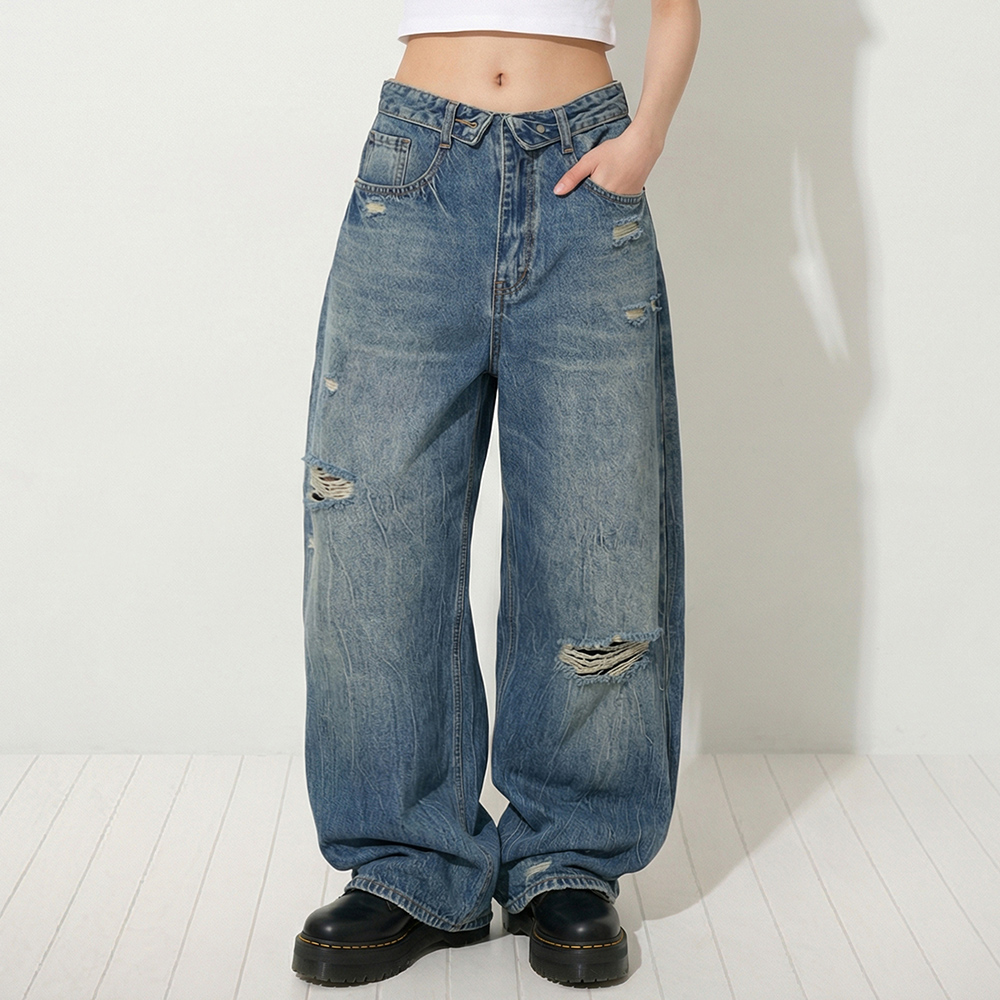 폴드 데미지 워싱 데님 팬츠_T611DE402