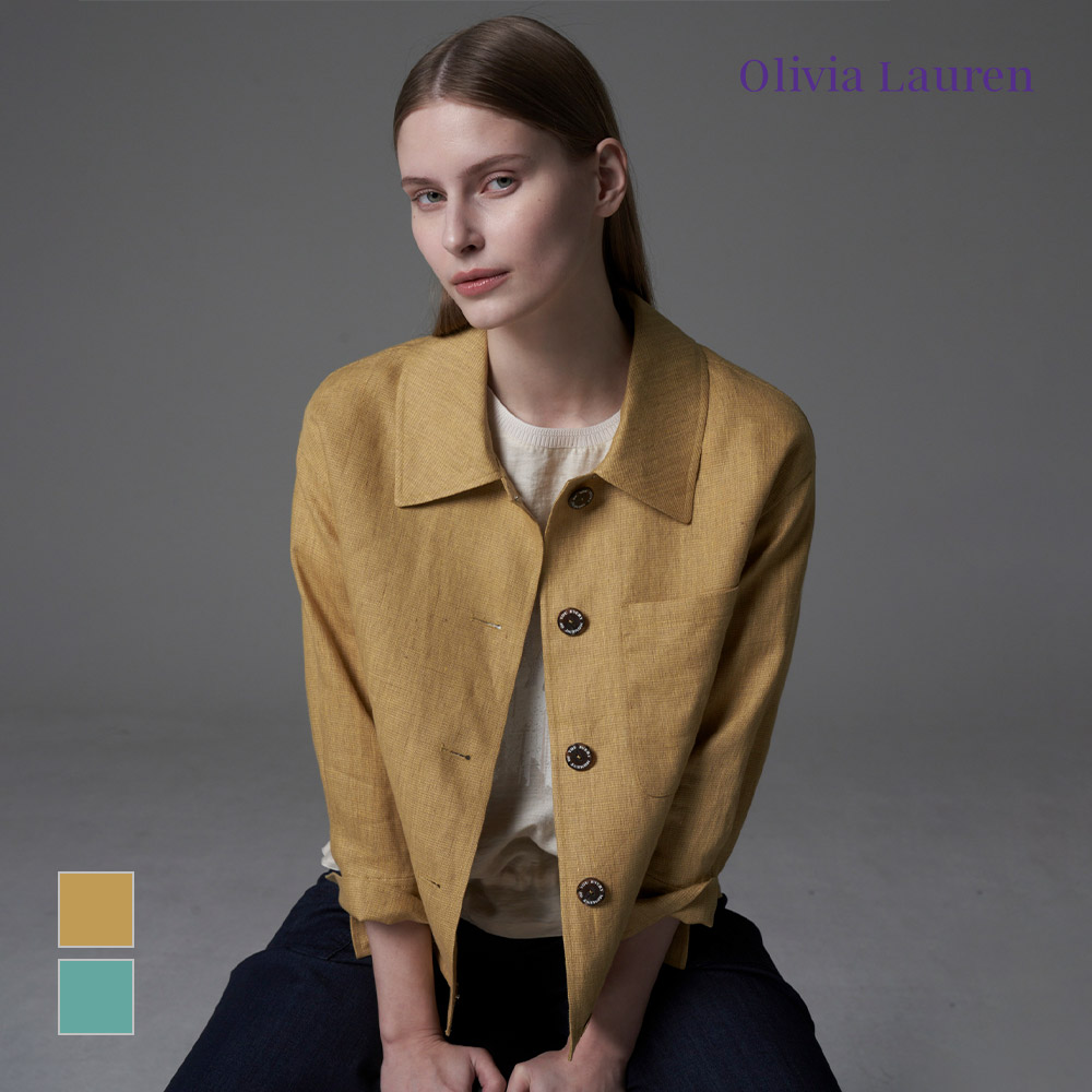 [올리비아로렌] 스탠 카라 린넨 자켓_VOCFU5M3131