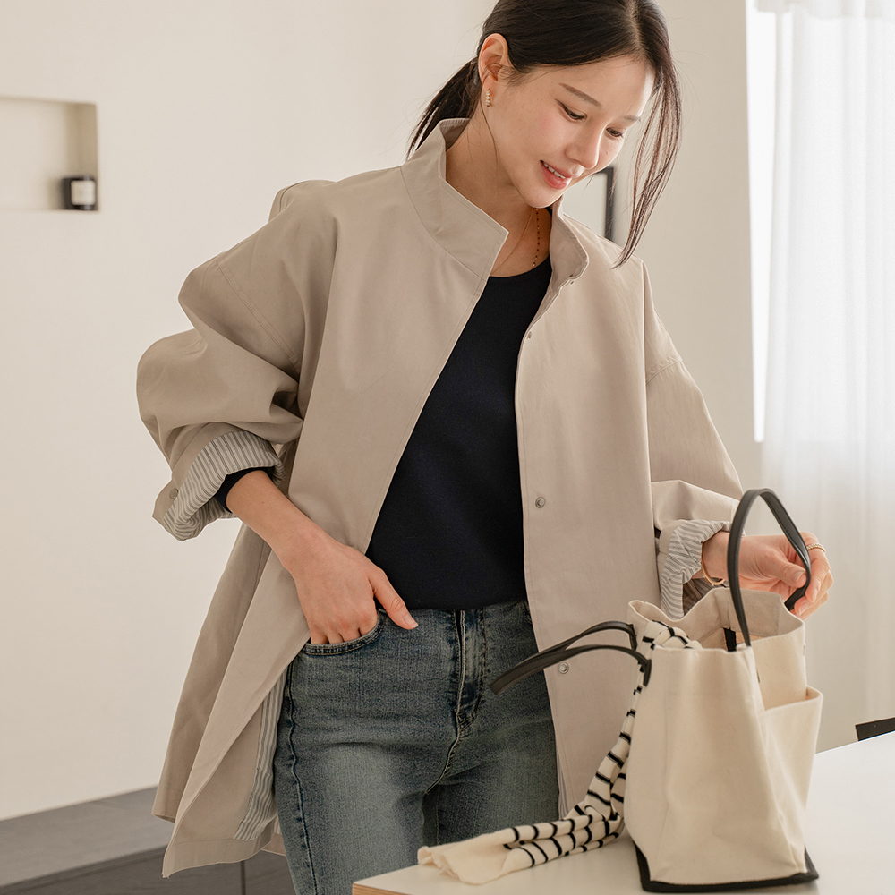 [캔마트] 하이넥 배색 트렌치 자켓