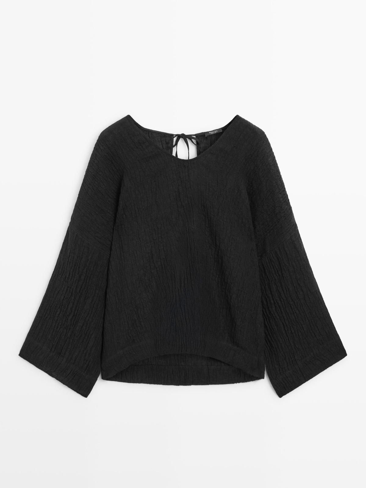마시모두띠 100 린넨 와플 니트 블라우스 블랙 4905/102 BLACK