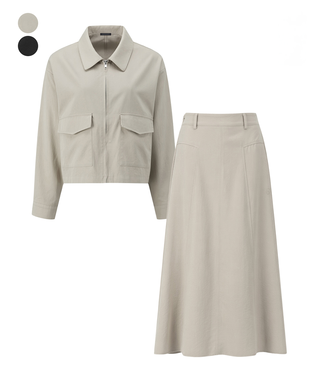카라넥 포켓 집업 자켓 롱 스커트 셋업 (TY1OP005L0)