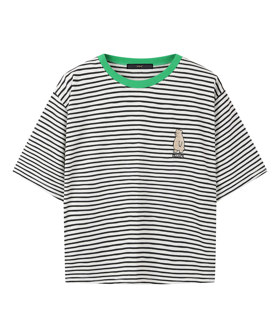 스트라이프 배색 자수 반팔 티셔츠 (DQ1LW012A)