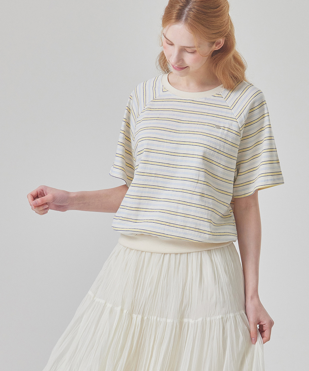 참 디테일 스트라이프 크루넥 티셔츠_M6M1TS6710
