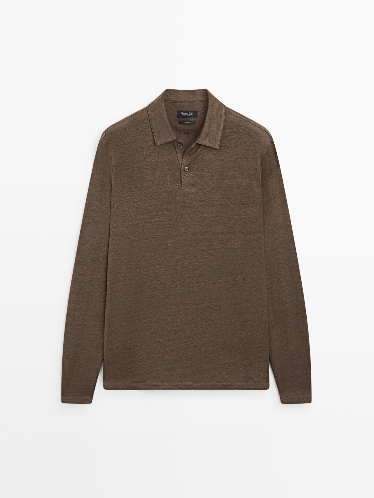 마시모두띠 프리미엄 린넨 긴팔 폴로셔츠 브라운 0721/198 OIL