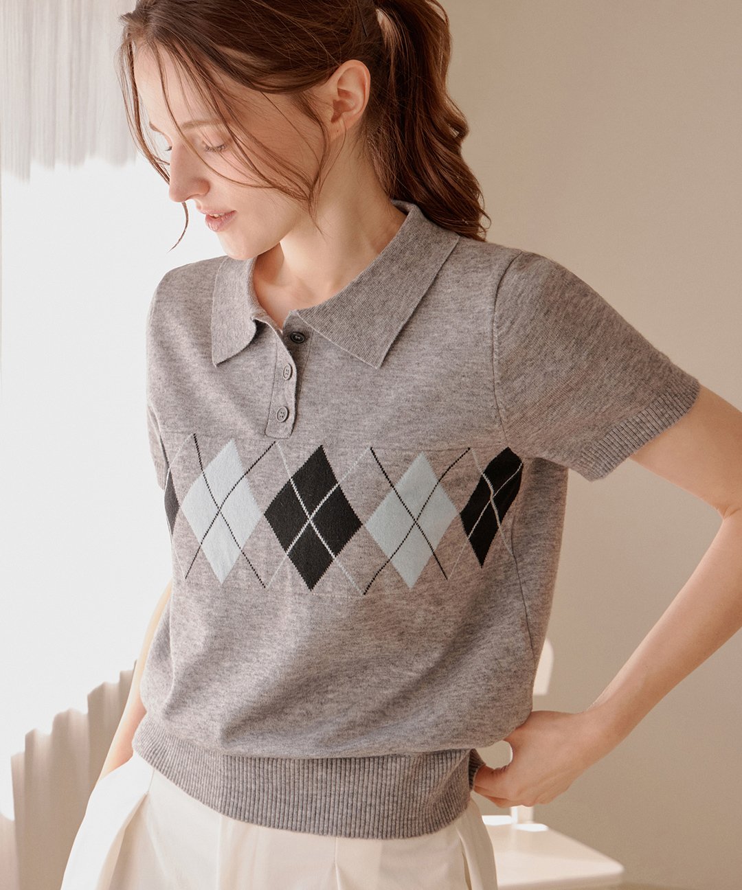 [블루레이스] 아가일 반오픈 카라 니트_B6S1KT2161