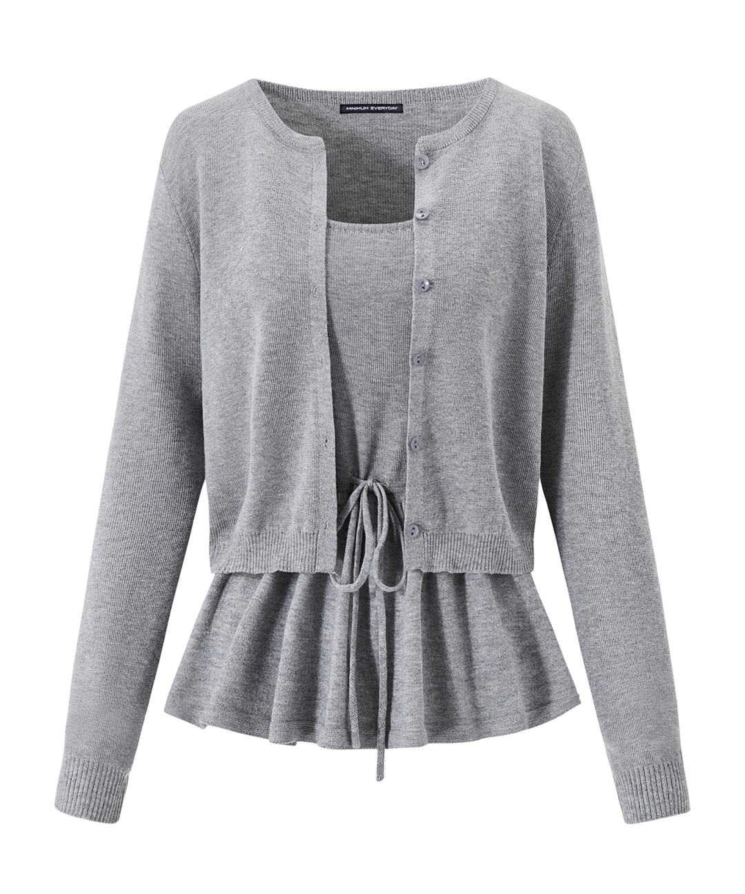 [미니멈 에브리데이]페플럼 스트링 슬리브리스 가디건 세트 (EC1CK007D)