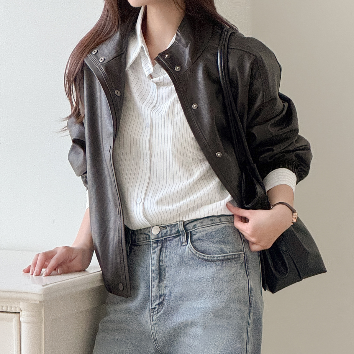 [고퀄리티] 하이넥 오버핏 레더 자켓_2컬러 택1