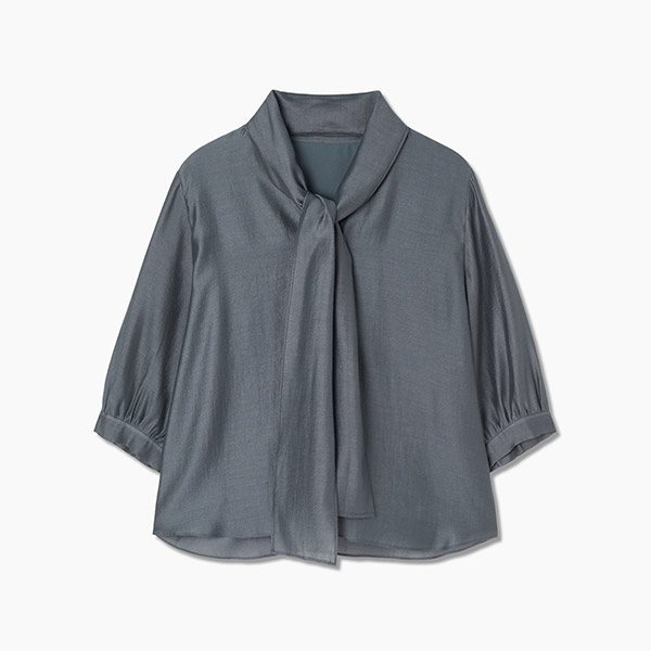 브이넥 타이 하프 슬리브 블라우스_SWWBLQ22020_GR